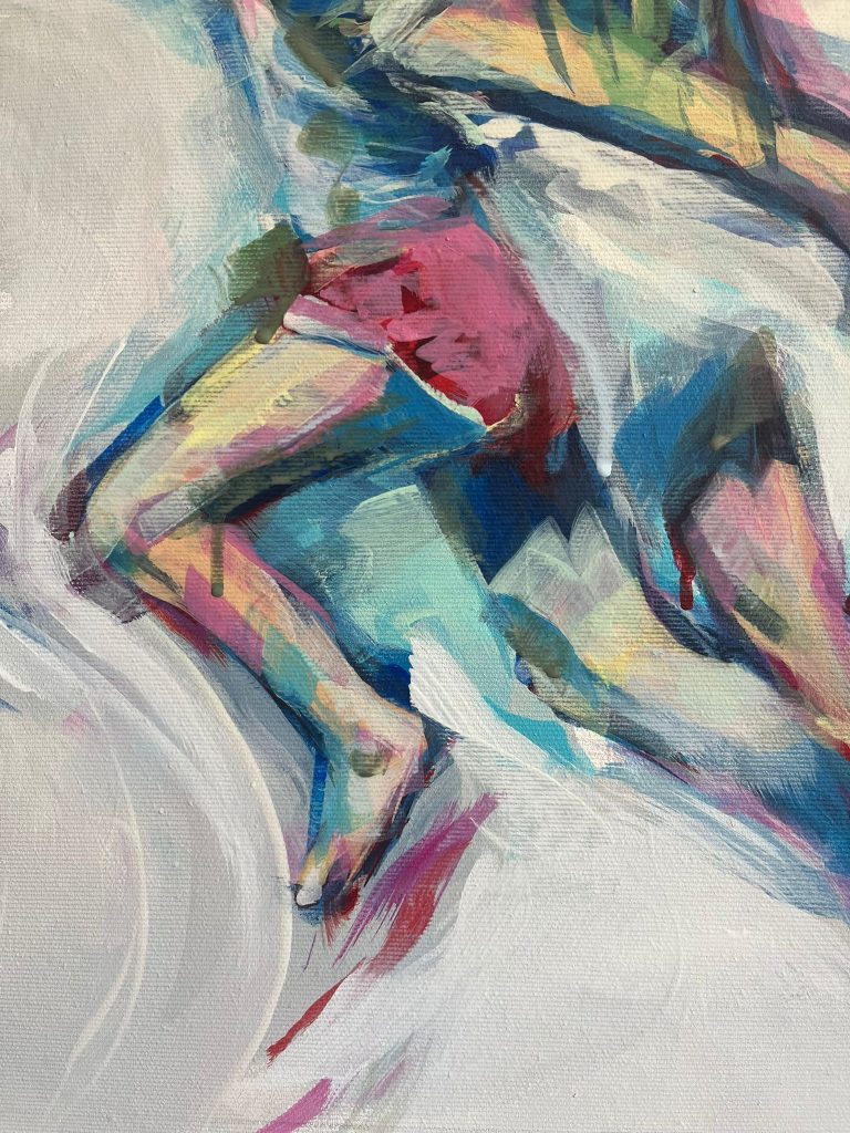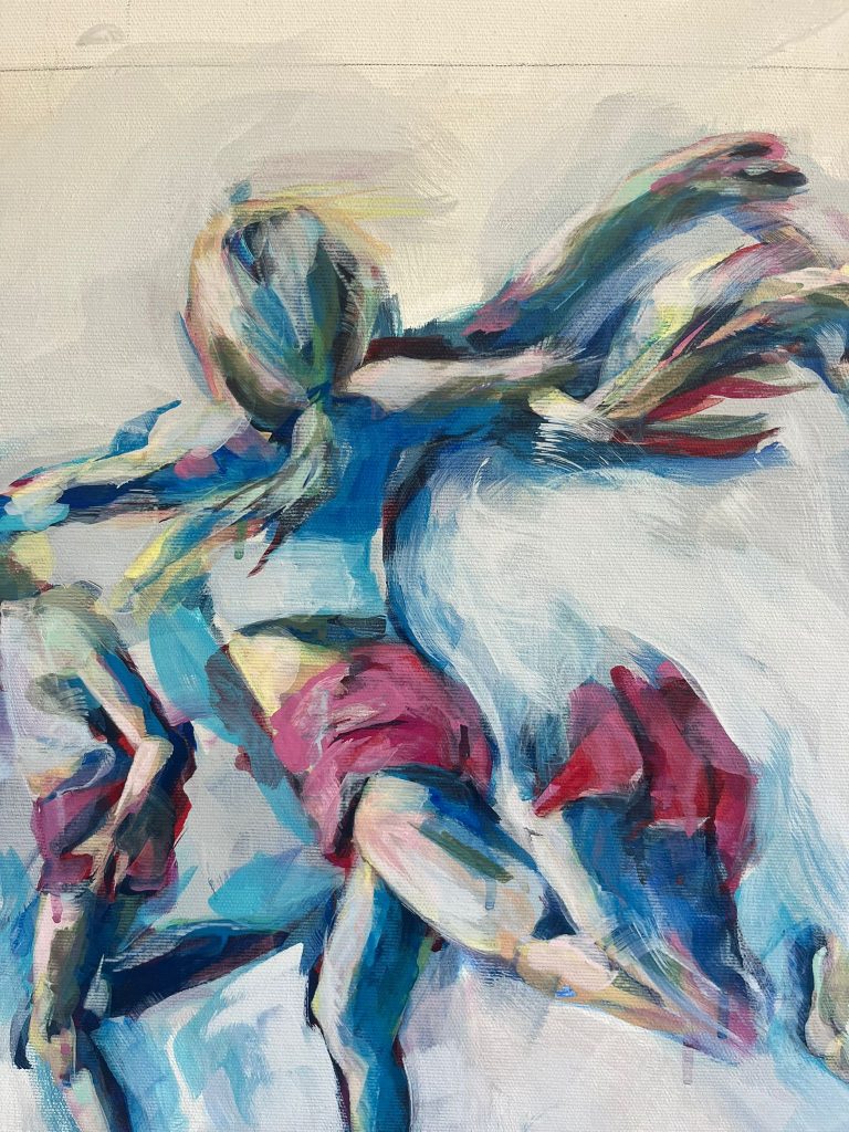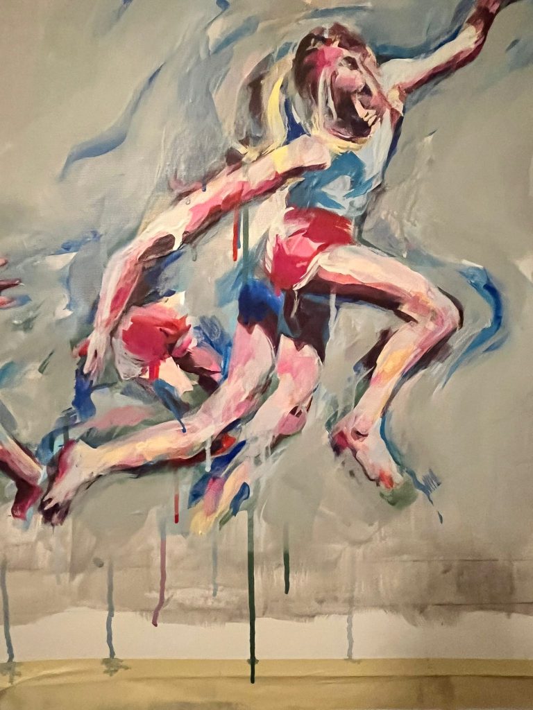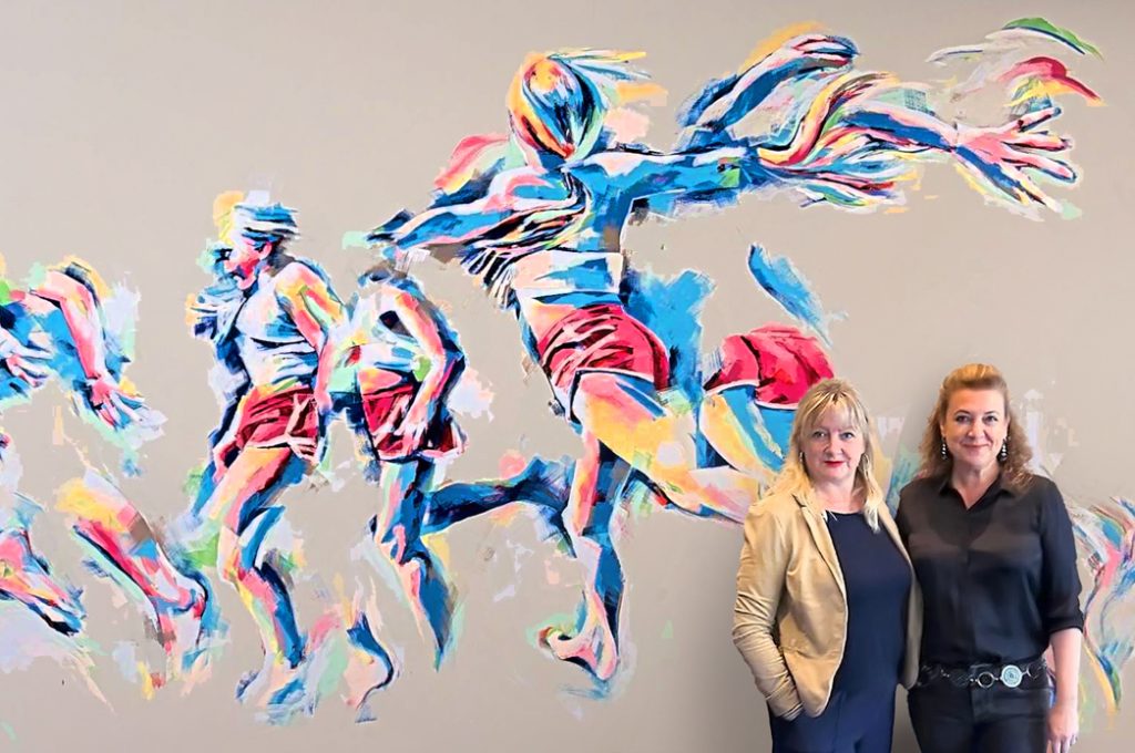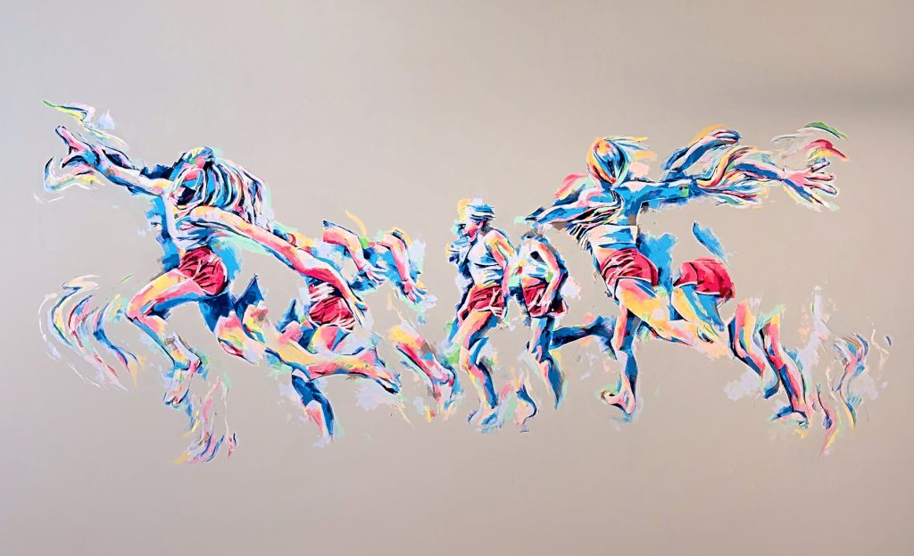 Particularly impressive is the artistic method: layer by layer, in vibrant shades of dispersion paint, the artist creates a work full of dynamism and intensity. The movement unfolds gradually – from a pause, through the first impulse, to a dynamic run. It gives the impression that the body is shedding the weight of stillness and transforming its movement into an expression of vibrant energy, inner freedom, and joy of life. In this way, not only art is created, but also the spirit of the Sport Arena becomes visible.